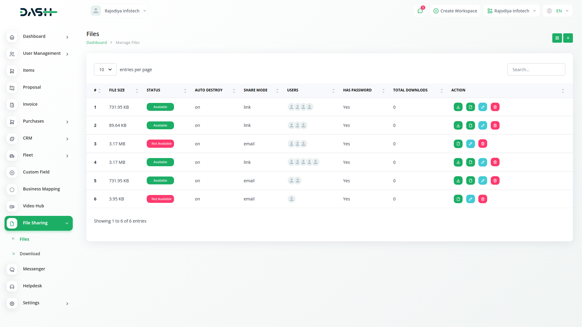 The purpose of the file sharing feature is to facilitate the exchange and distribution of digital files between users or groups of users. It enables seamless collaboration, efficient communication and easy access to shared content. In it you can also select multiple users, add image, pdf, txt files etc and you can also share files through mail or link.