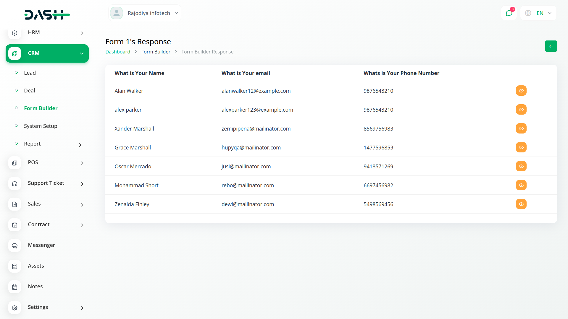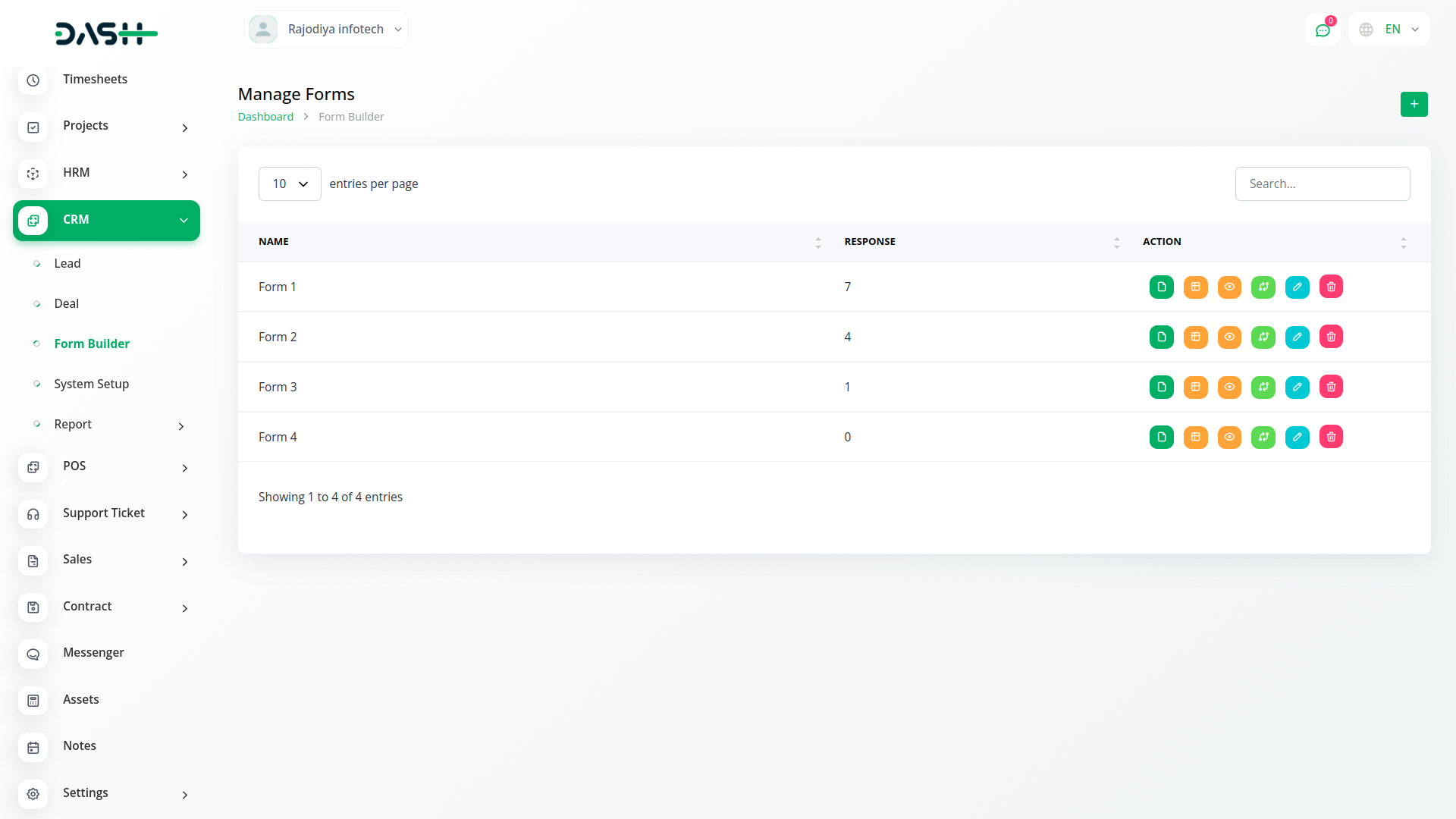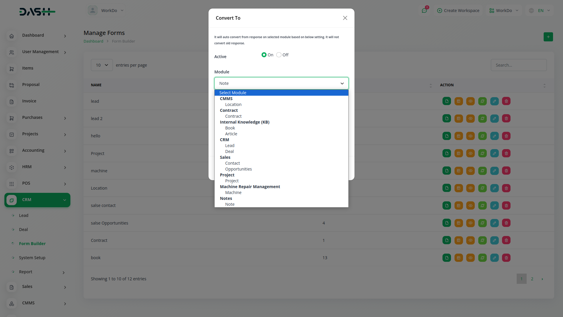 Within our platforms Actions section, youll find a range of functionalities tailored to streamline your workflow. Here, you can effortlessly copy the form link, access form field editing or viewing options, review responses, and seamlessly convert forms into leads or CRM entries. When transforming a form into a lead, all details are seamlessly transferred to the lead column. Conversely, converting it into CRM enables convenient form filling directly from the frontend. Additionally, you retain the flexibility to edit the form name to suit your preferences.