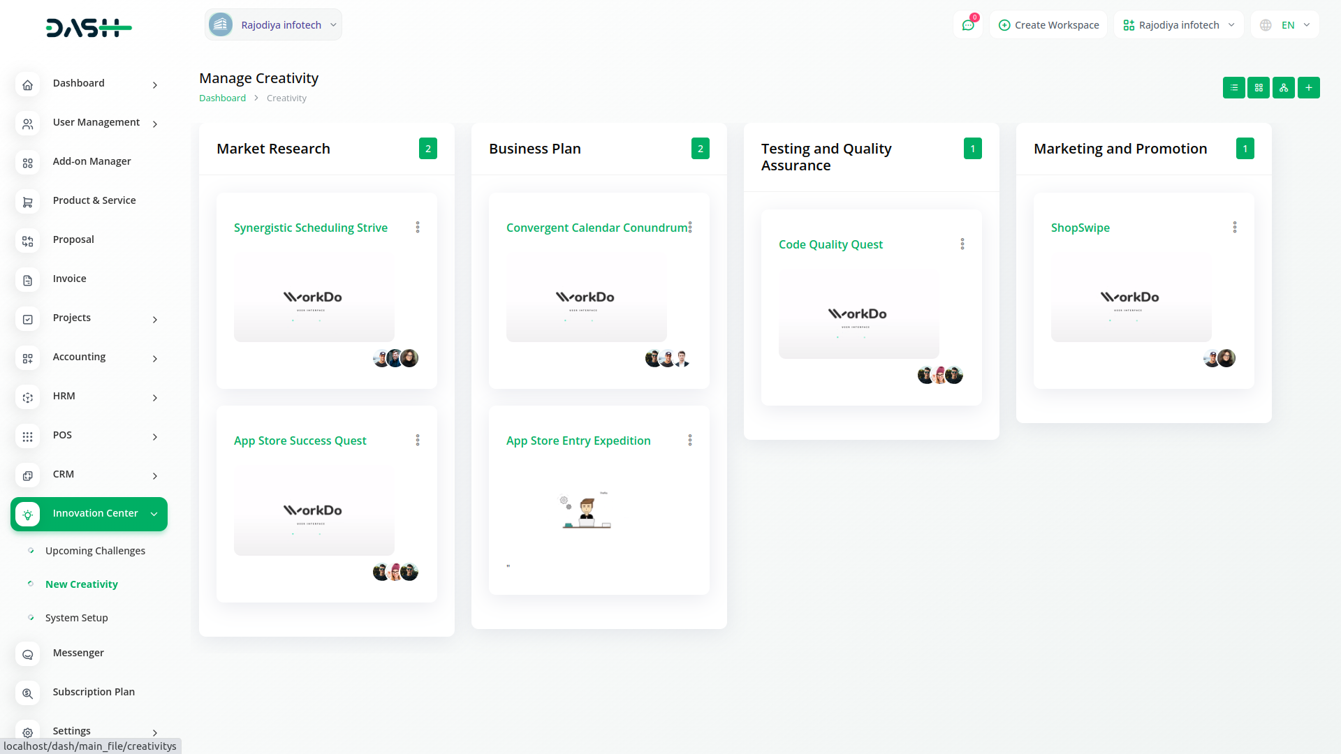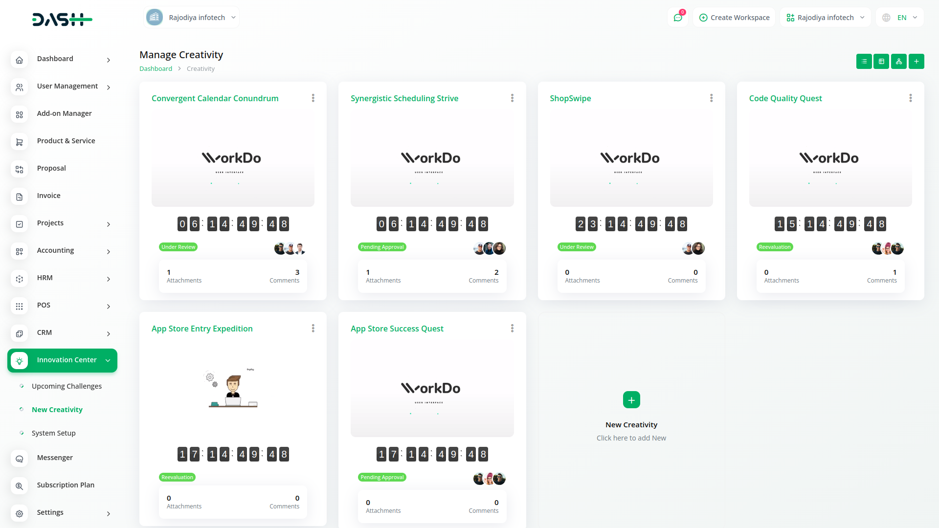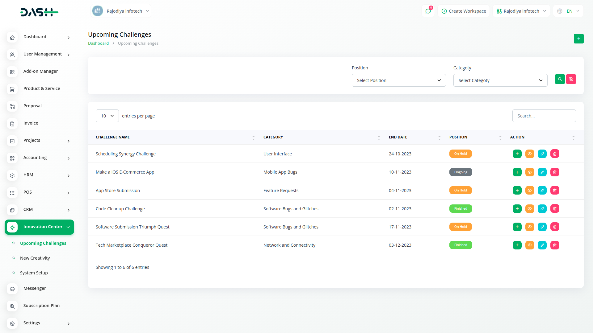 In the Innovation Center module, you can create a challenge related to your project, business, or company. You can also set a deadline and provide an explanation and description for that challenge.