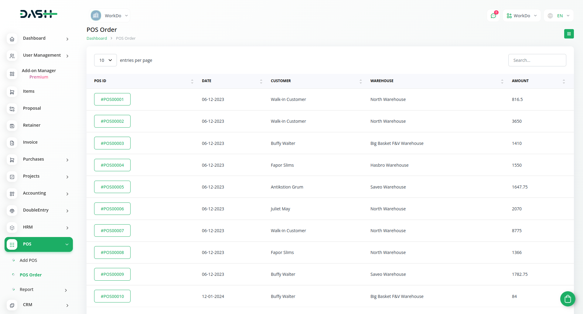 Welcome to the POS Module in Dash SaaS, your ultimate solution for streamlined sales management. Our platform offers a user-friendly dashboard where you can easily navigate through your sales activities. At the heart of the dashboard is a dynamic chart representing your sales reports, providing valuable insights into your business is performance. Whether you are a small retail store or a bustling restaurant, our POS Module empowers you to efficiently manage your sales process from start to finish.