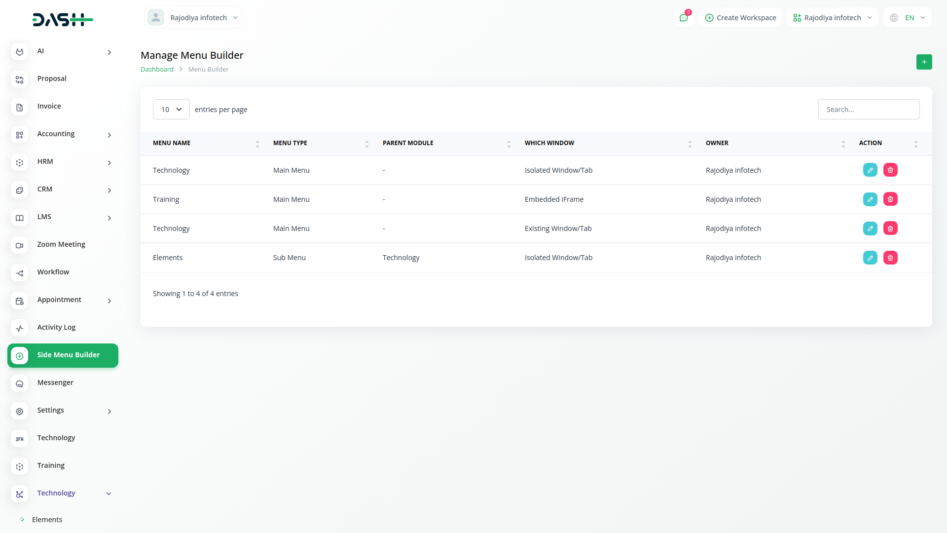 You can create a module in the sidebar by simply clicking the Create button. In which you can manage the module and also edit that module according to your own. And you can also delete that module.